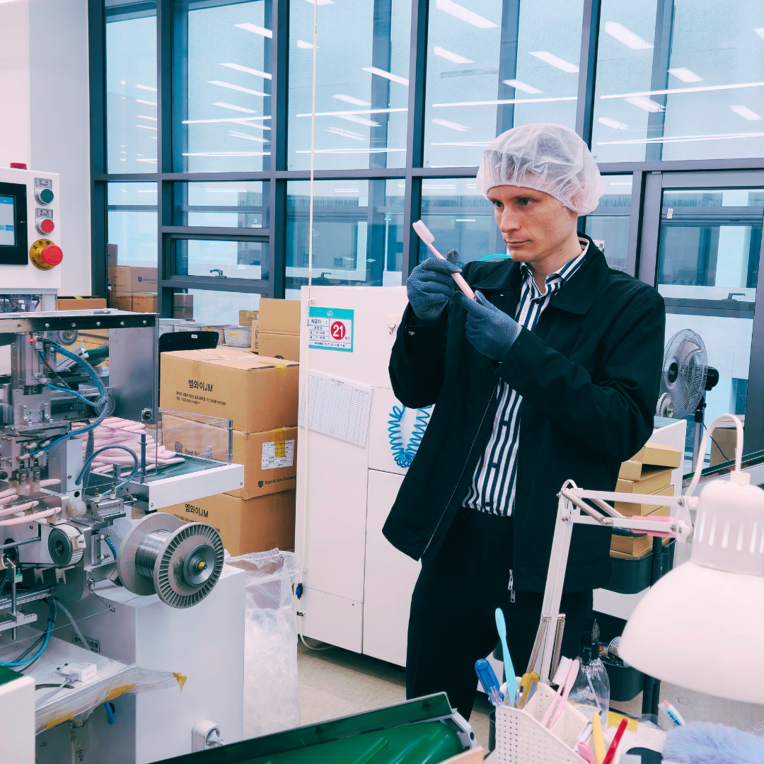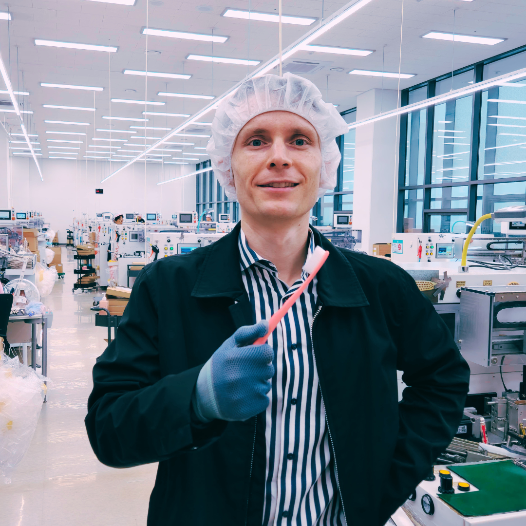 Der Gründer von WANGTA und Inhaber der Zahnbürstenfabrik hat mir persönlich eine Führung durchs Werk gegeben, sodass ich mich von den Qualitätsstandards selbst überzeugen kann.