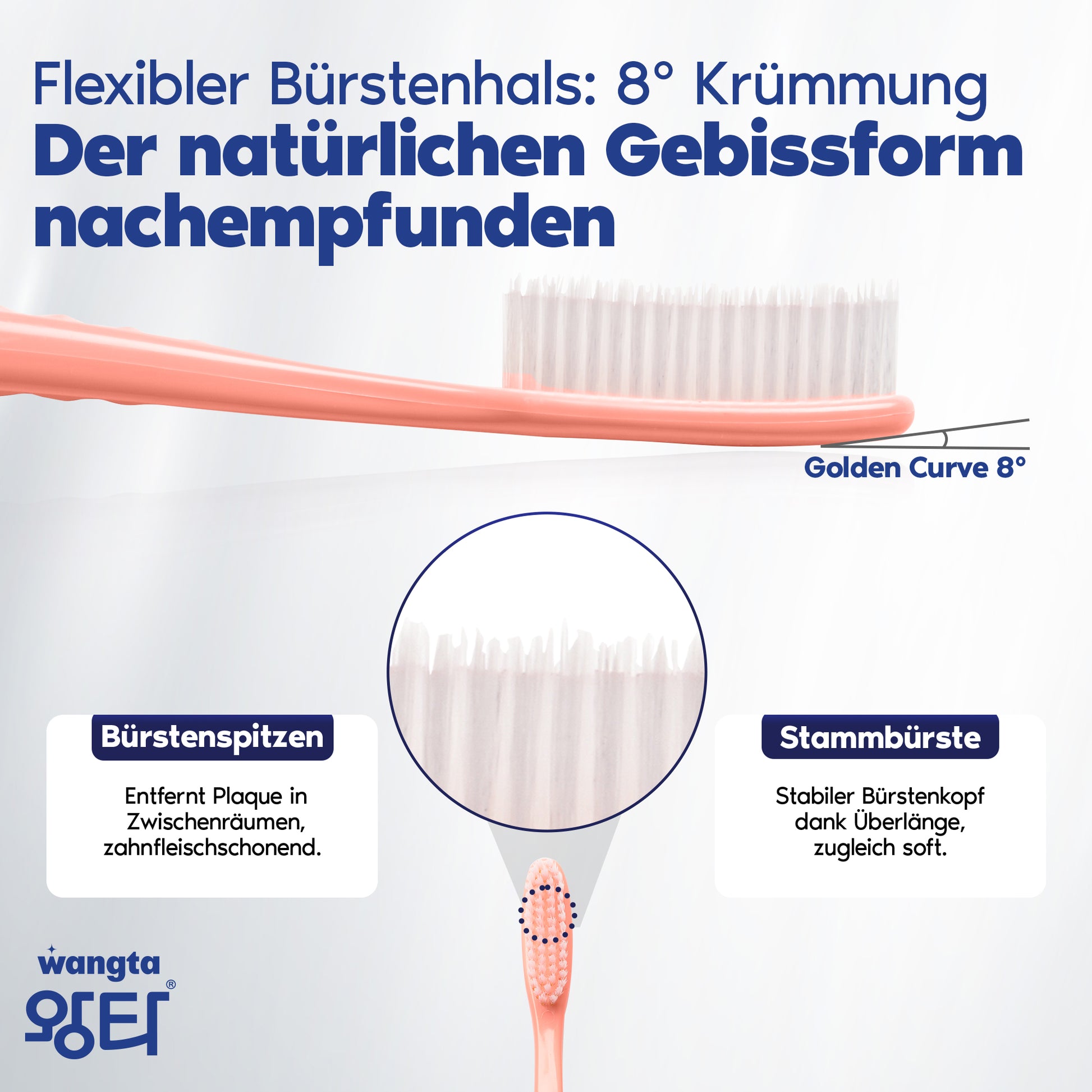 Mehr Effizienz beim Putzen: Mit deiner WANGTA Zahnbürste erreichst du bis zu 5 Zähne gleichzeitig 🦷! Der Bürstenkopf ist doppelt so lang wie der einer durchschnittlichen Zahnbürste – für schnelleres, gründlicheres Putzen 🚀.