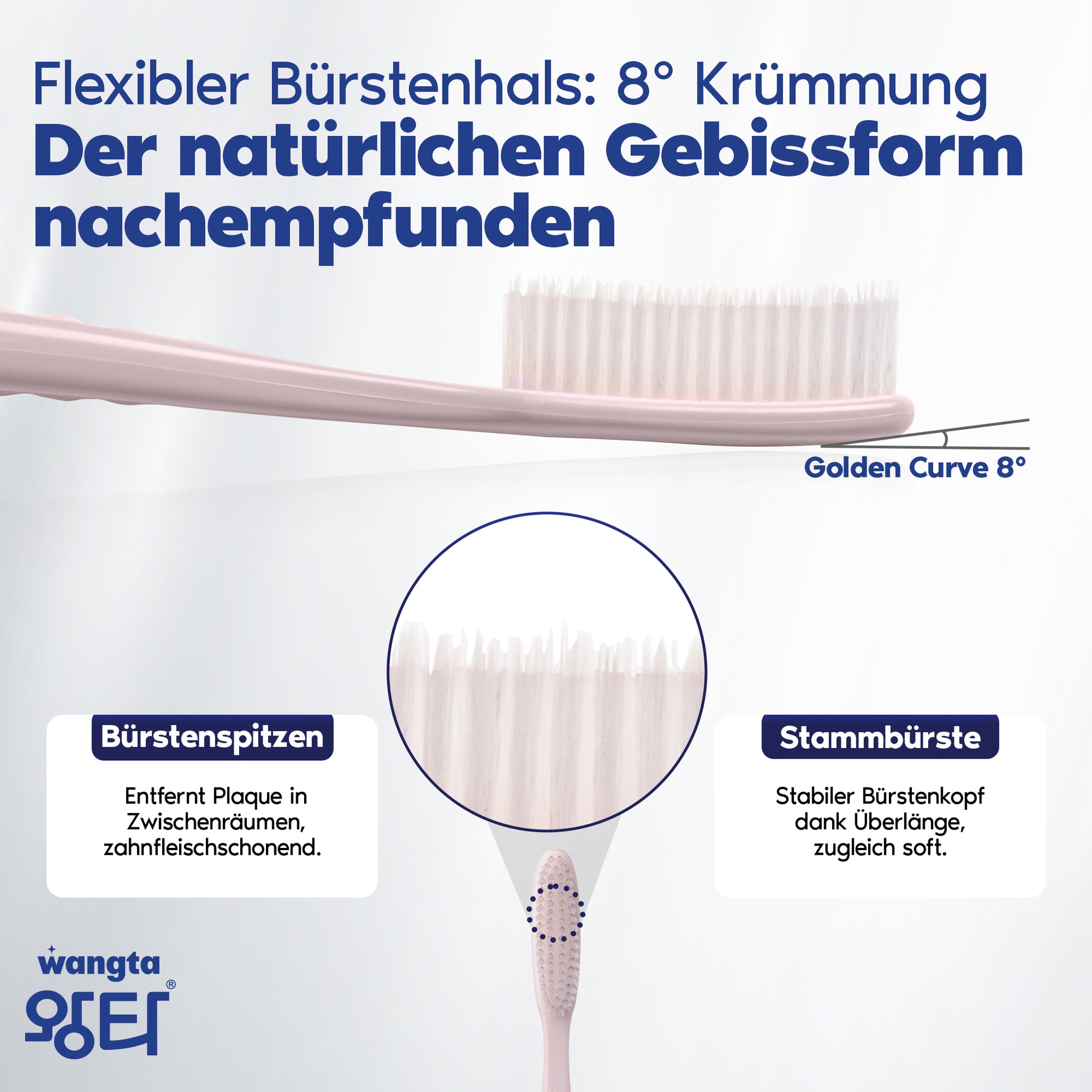 Mehr Effizienz beim Putzen: Mit deiner WANGTA Zahnbürste erreichst du bis zu 5 Zähne gleichzeitig 🦷! Der Bürstenkopf ist doppelt so lang wie der einer durchschnittlichen Zahnbürste – für schnelleres, gründlicheres Putzen 🚀.